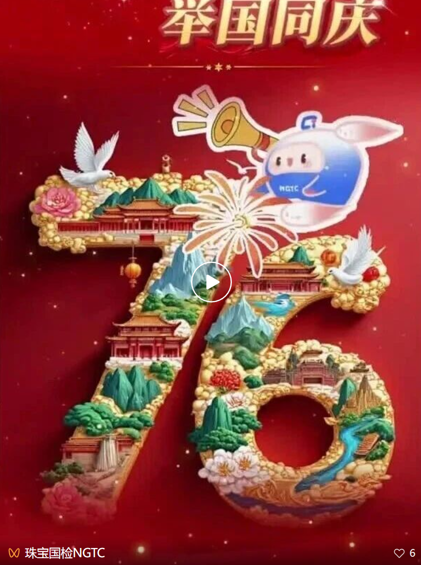 珠宝国检集团庆祝祖国七十六周年华诞!