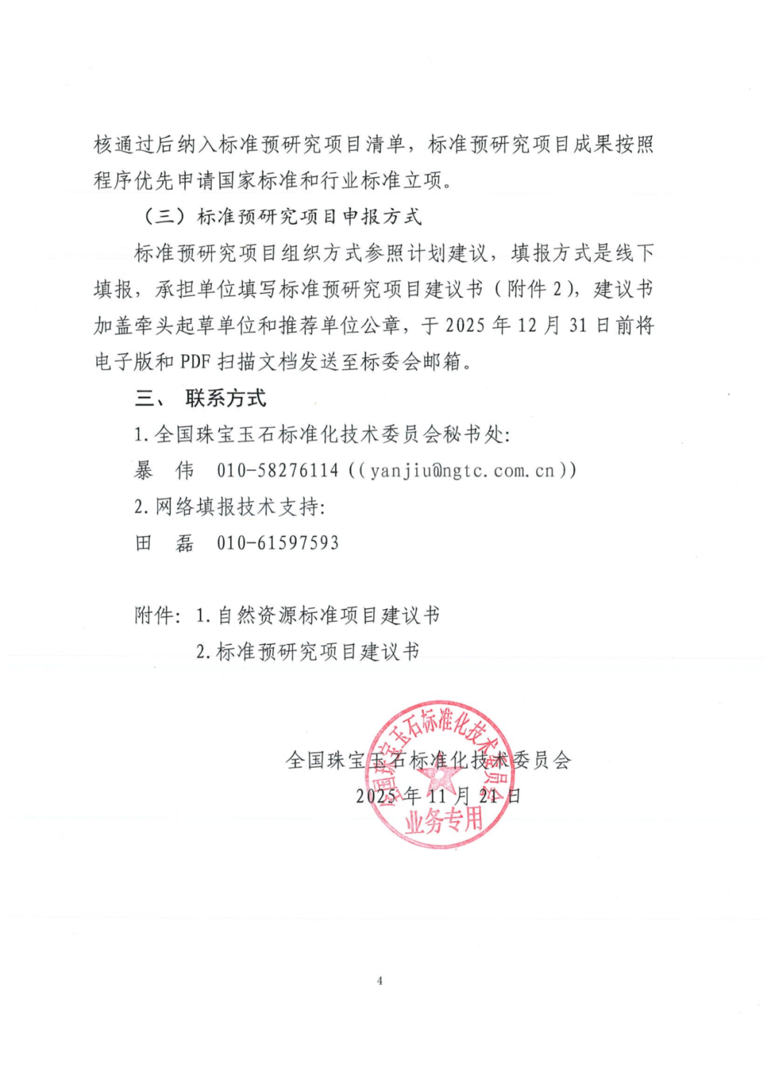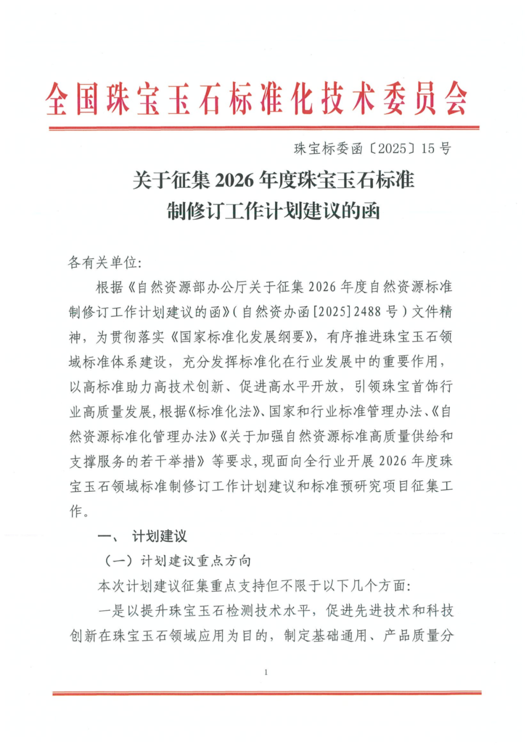关于征集2026年度珠宝玉石标准制修订工作计划建议的函