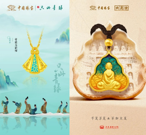 激活文化艺术IP的当代价值,推动非遗技艺的活化,创新应用珐琅、花丝等传统工艺,打造“只此青绿”“大足金”“国宝守护”等文化艺术IP作品,以生动实践致力于“让收藏在博物馆里的文物、陈列在广阔大地上的遗产、书写在古籍里的文字都活起来”,让消费者在佩戴中感知历史、触摸文明。