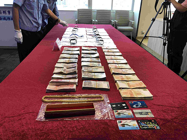 7月17日,警方经过缜密侦查,在深圳市龙岗区某小区内将犯罪嫌疑人蔡某某(男,香港人)、廖某某(男,香港人)、李某(女,湖南人)等3人抓获,并在蔡某某身上及其住处,缴获12块名表、174万元港币及其他赃物一批。此后,警方乘胜追击,先后在罗湖区抓获涉嫌销赃的犯罪嫌疑人黄某某(男,海南人),在福田区抓获同案嫌疑人孙某某(男,香港人)。香港警方也同步开展行动,在香港抓获多名同案嫌疑人。