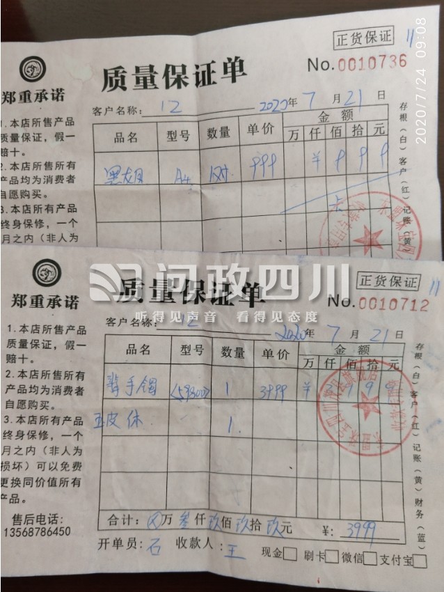 西安网友在投诉平台上详细叙述了整个购物过程:7月21日晚上6点,他随团从九寨沟返程,途经茂县时,导游突然加了行程,说去参观一个名为东盟珠宝的购物店。