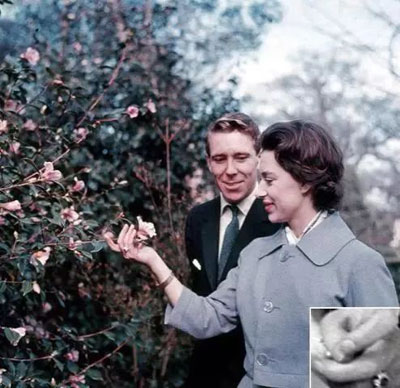 伊丽莎白女王唯一的妹妹,玛格丽特公主,收到的订婚戒指主体是红宝石,形态上模仿玫瑰花蕾,以呼应公主的中间名Rose(玫瑰),非常浪漫。